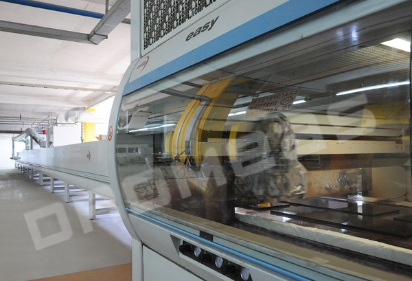 All the above processes are taking place with electronic guidance, assuring the total control of repeating and constant production quality. The factory\'s productivity in products of melamine in full processing, cutting, perimetrical finish, and perforation is 130m3 of raw material or equivalently 5.000 – 6.000 pieces of desk surface per 8 hours. The departments of varnish, lacquer paint as well as control and packing department have a similar productivity.